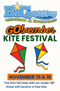 Let your imagination soar at the Big Rivers Go!vember Kite Festival–Where the skies come alive with color, laughter and high-flying fun! For two unforgettable days, families will gather to launch kites, chase breezes and celebrate the joy of flight. The first 100 kids who purchase a 48″and under ticket each day will receive a free kite–ready to decorate, fly and take home!